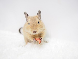 大きさは大人の体長で尻尾を含めなければ12~20cm程度、寿命は5~10年程度です。コミュニケーション能力が高いため人にもとてもよく慣れます。デグーのいる場所は20℃、湿度は40%を下回らないように注意が必要です。