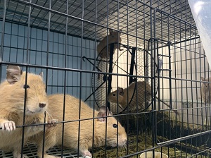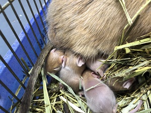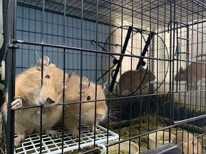 デグーは南米大陸のチリに生息するげっ歯類で、アンデス山脈の標高1,200mほどのところに住んでいます。草地や低木、茂み、岩場で覆われた半乾燥地帯で気温は0℃~夏には40℃になる場所です。野生ではイネ科の植物やイネ科以外の植物の葉や種などを食料にしている草食性の動物です。夜行性で歯が一生伸び続けるため、硬いものや木をかじる習性があります。鳴き声でコミュニケーションをとるため「アンデスの歌いネズミ」と呼ばれています。