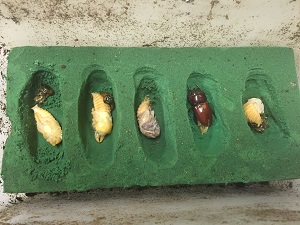 蛹室を確認した生体は前蛹~羽化までの管理を行う専用のスペースへ移動します。