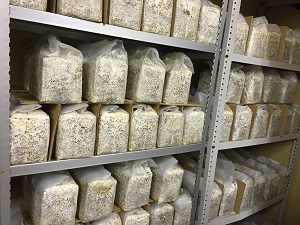 ボトルに詰める前の菌糸ブロックは光と高温に弱く、劣化を防ぐために飼育用品作製ルームも年間23度で管理し、