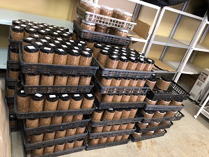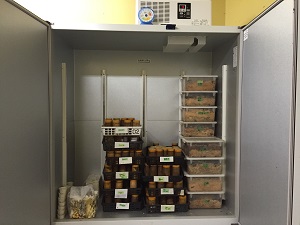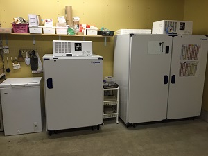 飼育用品製作ルームには湿度を調整できる大型低温貯蔵庫が2台あり、当社養殖用の生体たちが越冬しています。
