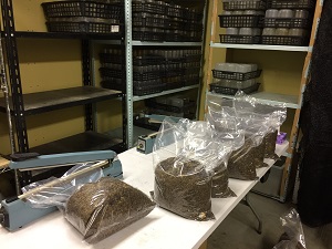 窓はなく完全遮光になっており、菌糸・飼育マットなどの飼育用品の保管や用品の作成をしております。